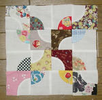 この、サンプラーキルト用の課題の蝶ネクタイ4つ程度のパターンだったら楽勝なんだけど、このボータイのパターンを使って作ったバッグのトップは、ビックリするほどピーシングが大変だった…!!!肩凝ったよぅ!!
